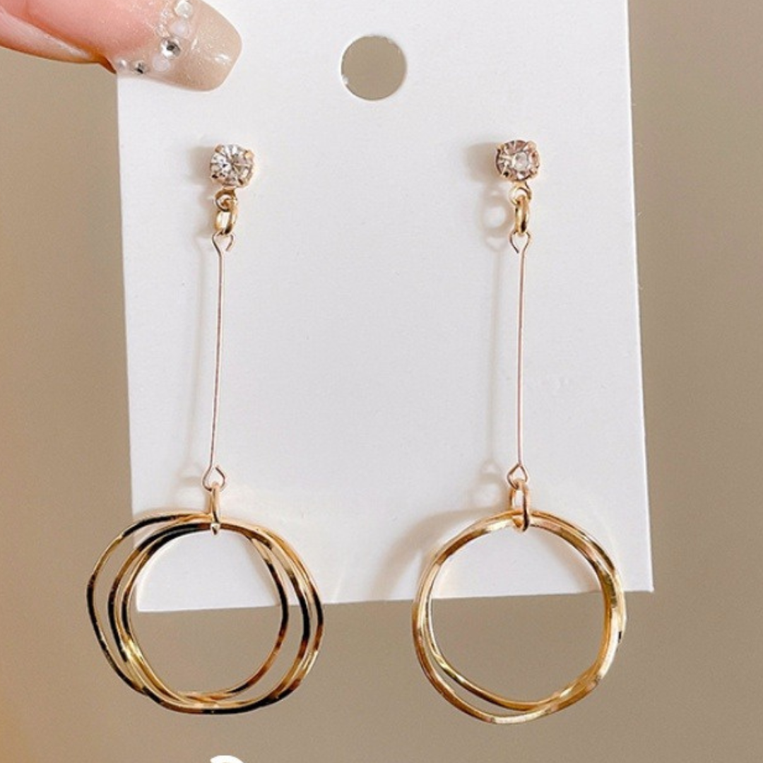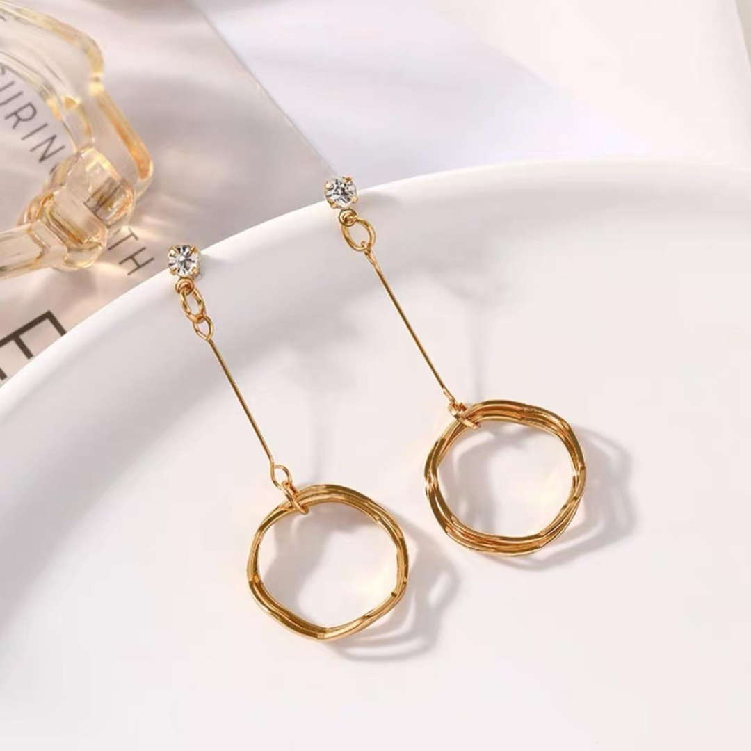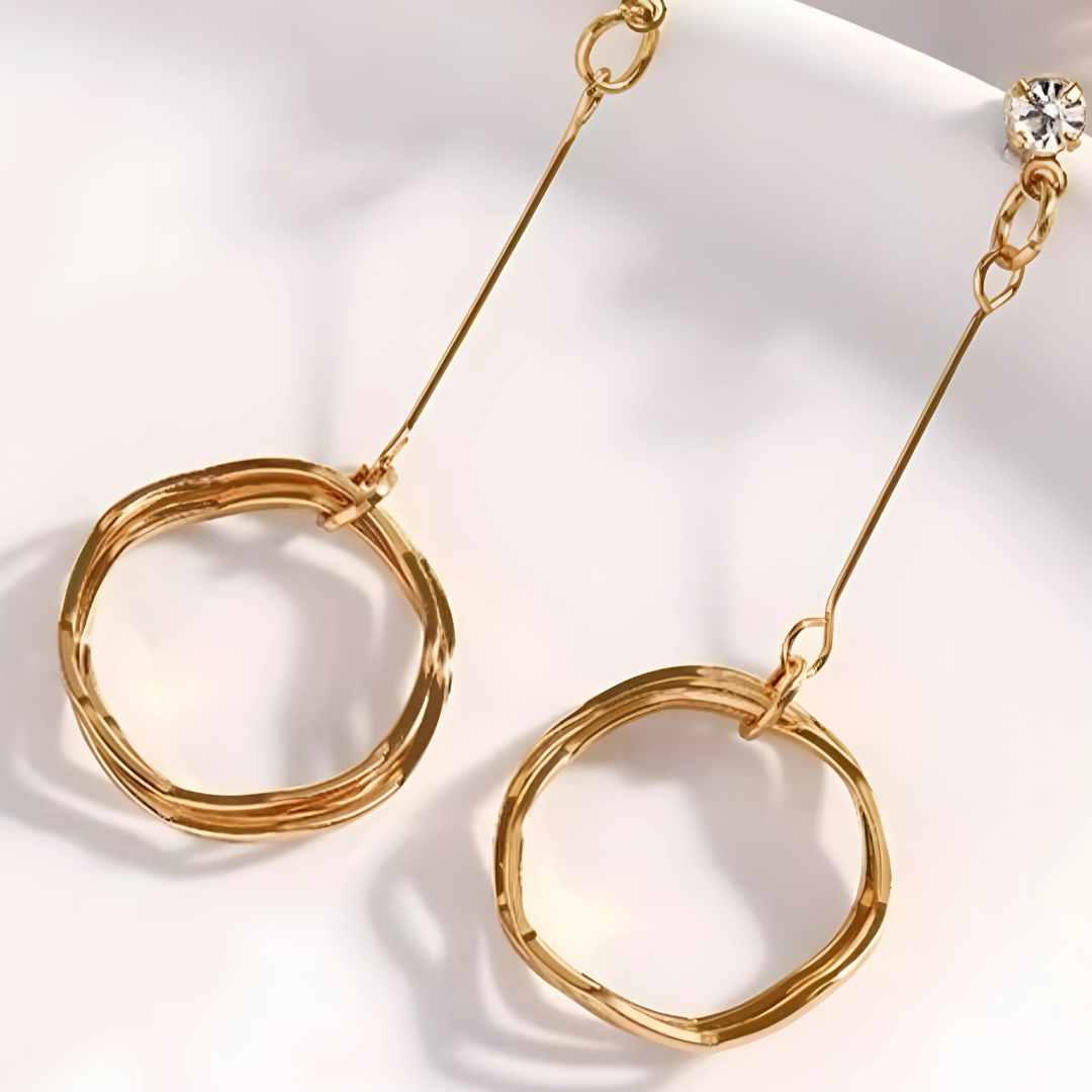 Geef je stijl een boost met deze elegante hangeroorbellen met een strak goudkleurig ontwerp en een delicate ronde bedel. De minimalistische structuur past moeiteloos bij zowel casual als formele looks en voegt een vleugje verfijning toe aan elke outfit. Perfect voor wie houdt van tijdloze elegantie met een moderne twist.