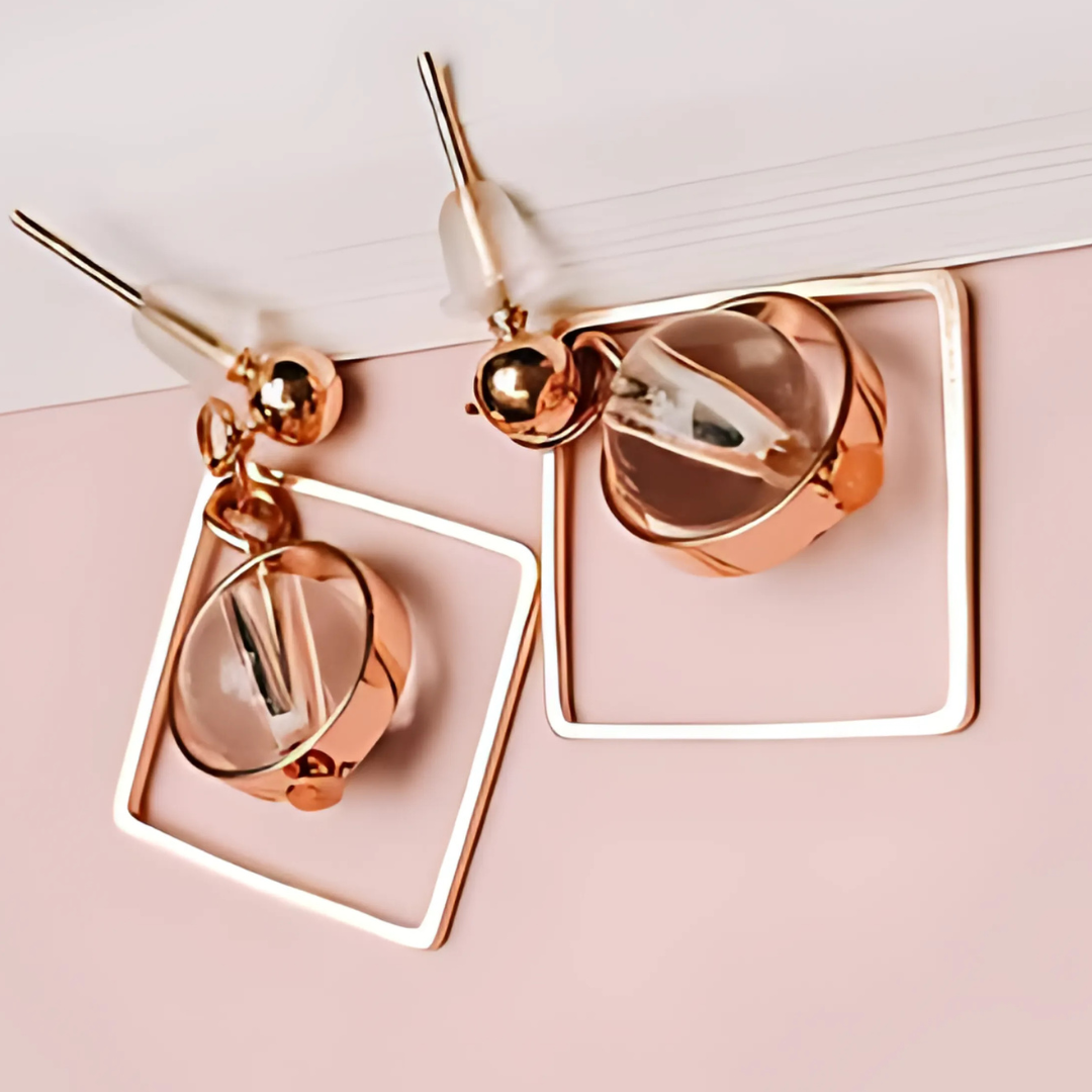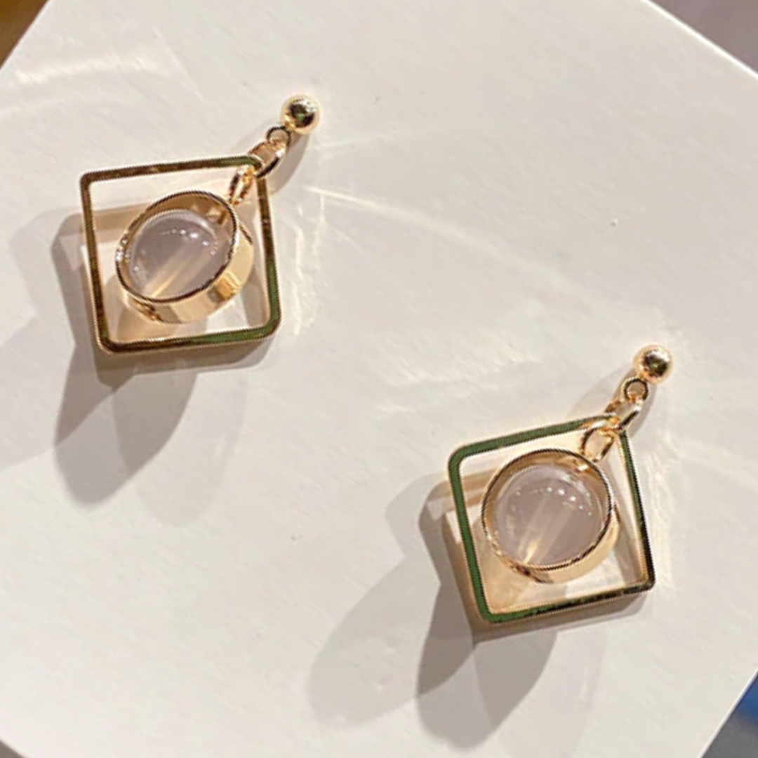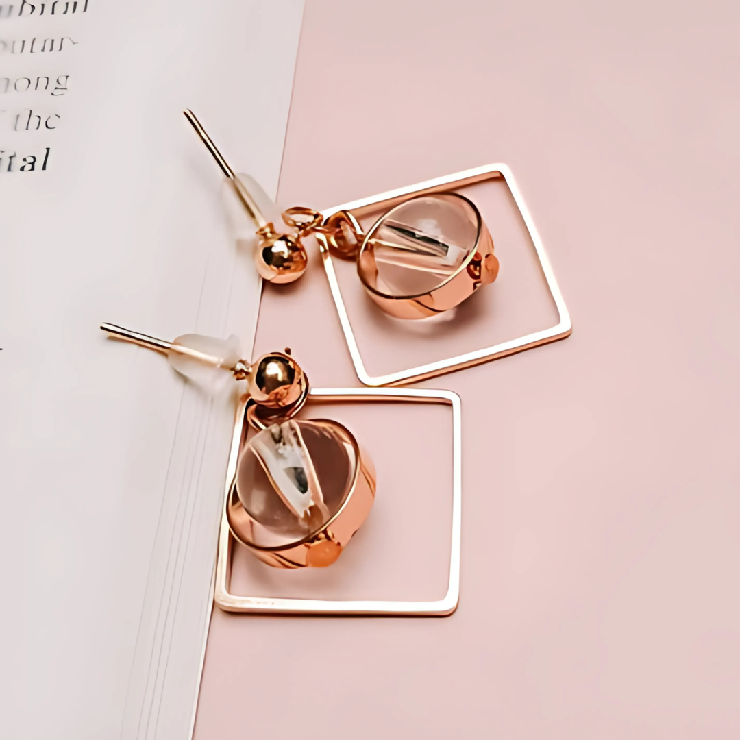 Voeg een moderne geometrische touch toe aan je look met deze chique goudkleurige oorbellen met een vierkant frame en een glanzende ronde steen in het midden. Hun minimalistische maar opvallende ontwerp zorgt voor een verfijnde charme, waardoor ze perfect zijn voor zowel dagelijks gebruik als speciale gelegenheden.